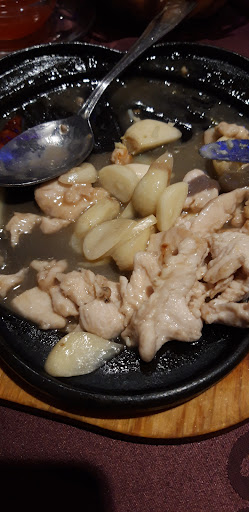 The garlic chicken chicken was served with what looked like a bulb of garlic roughly chopped and half cooked served with the chocken, most of the garlic was firm and raw and unedible.