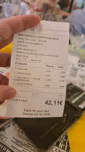Read moreWhen choosing to eat in Playa Blanca it is always difficult because there is so much choice however I am so glad we chose Puerto Blanco. In my opinion it was one of my favourite places to eat in Playa Blanca. We enjoyed it so much we came back and ate twice during our holiday. The staff are so friendly and cater for all your needs. The food is so delicious and freshly cooked to order. Came for both dinner and lunch. They have a great selection to choose from but the waiter recommended the steaks especially. We were not disappointed. The steaks were cooked to perfection and were so tender. Duck spring rolls for starter were also really good - packed full of duck and nice and crispy, not soggy. Great wine too, recommend the Matarromera Crianza👌 Lunch time was also amazing. Went for the chicken burrito but the waiter kindly catered for me as I said I only wanted chicken, cheese and rice inside of it (I'm so fussy🙈) and it came out exactly as I'd asked and it was so delicious. One of the best burritos we've had. Generous filling, chicken well seasoned and in a nice spicy marinade and to top it all of toasted and wrapped with an outer layer of cheese!! Overall amazing food. I would recommend to anyone and next time I'm in Lanzarote this is the first place...