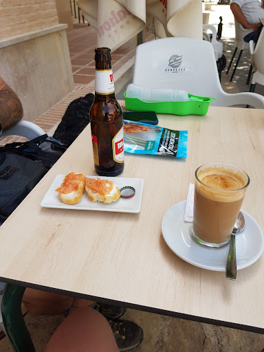 Hemos parado a tomar algo con intención de comer y lo que nos ha sorprendido ha sido que la persona que atendía estaba sentada en una mesa en frente del bar y parecía una cliente, al rato ha venido y nos ha atendido.. dentro del local hacia un calor de justicia, al entrar está persona ha pedido a un paisano que tomaba un botellín que cerrara la puerta del bar y ha puesto el aire acondicionado.. nos hemos tomando un par de Aquarius y nos ha preguntado si queríamos algo de tapa.. ha sido 4,80 y hemos decidido terminar nuestra experiencia e intentar comer...