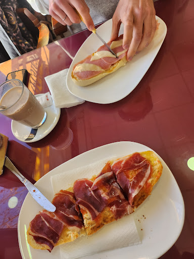 Read moreLa tomadura de pelo MAL, El servicio bien, la tostada con jamón muy buena. A pesar de un cartel enorme anunciando "tostada con jamón y café 3,5€" me cobran 6€ por desayuno aludiendo que "es que aquí es así, el precio de la oferta es de media tostada, aunque no lo ponga".... Después alude a la calidad del jamón (que estaba bueno) pero no para tomarnos el pelo diciendo que como no somos de aquí.... Vamos, que vivo a poco más de...