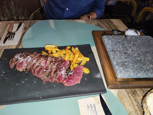 Read moreThe ham croquetas were excellent and as was the very cold Mahou beer. They bring you the solomillo steak you choose according to the grams cut on a board. At the same time they bring a hot stone to your table and you cook your steak however you like. Within a minute it's ready to eat, I wish they would have more than the 5-6 fries it brings pp. Could have skipped the chocolate...