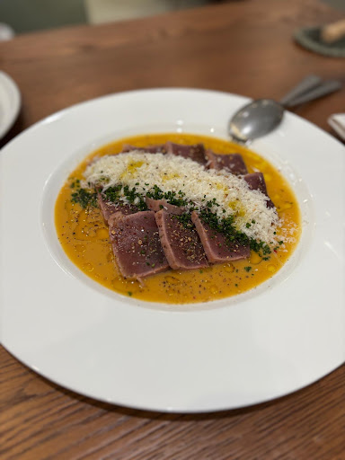 Carpaccio de atún Como entrante pedí el carpaccio de atún, y fue simplemente espectacular. La textura, el sabor, el aliño… todo estaba en su punto. Un plato fresco, delicado y lleno de sabor.