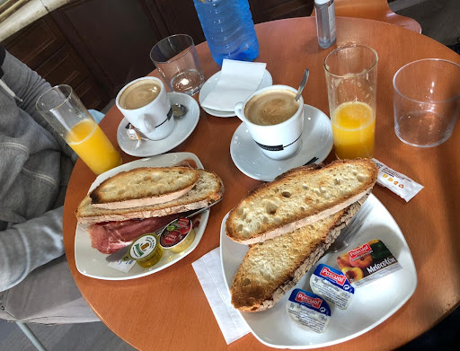 Read moreFuimos a esta cafetería-pastelería porque la recomendó el guía de la visita guiada que hicimos. Primero quisimos probar algunos productos, ya que me gusta la repostería fina (me gusta también hacer postres en casa) así que soy bastante selectiva cuando valoro una pastelería y sus productos. Primeramente probamos una pasta aceitada, un dulce típico de Zamora, y me pareció exquisito. Así que compramos dos cajas de medio kilo para regalar a la vuelta a casa. Pedimos también un trozo de una tarta de almendras y nueces que tenía muy buena pinta y resultó ser también exquisita. Hemos vuelto hoy y hemos probado las cañas zamoranas (un canutillo relleno de crema), y las recomiendo totalmente, el canutillo está muy crujiente y la crema muy fina, realmente buenos. Y ya de paso nos traemos de vuelta a casa unas pastas nevadas de almendra. Les doy un 10 en todo lo que hemos probado. Una persona local que estaba allí nos ha dicho que son las mejores aceitadas y cañas de Zamora. Y además están...