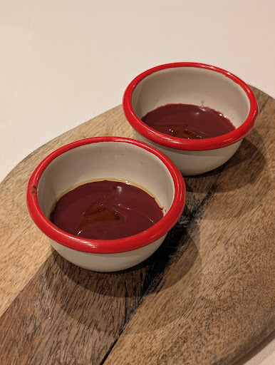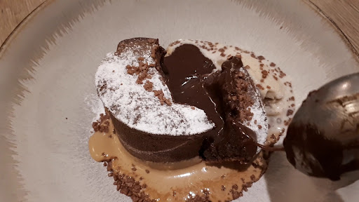 Read more¡ESPECTACULAR! Imprescindible en Zamora. La atención de los camareros de 10. Teníamos reserva para comer. Nos pusieron un APERITIVO de jabalí, invitación de la casa, muy rico. Pedimos CROQUETAS DE KIMCHI, de las mejores que hemos comido (hay que probarlas sí o sí), muy jugosas por dentro, casi líquidas, explosión de sabor con un ligero toque picante. Las MOLLEJAS DE LECHAZO, rebozadas, con huevo "escondido" a baja temperatura, muy crujientes, nos encantaron. GARBANZOS DE FUENTESAUCO CON BOLETUS, guisados, en su punto de cocción, con sabor intenso y textura melosa. El SOLOMILLO DE JABALÍ, una carne al punto que casi se deshacía en la boca, con un acompañamiento, entre otros, de puré de castañas buenísimo. Remantamos con una TARTA DE QUESO muy cremosa y, por ponerle un pero subjetivo, algo fría (porque personalmente me gusta a temperatura ambiente). Y un COULANT de CHOCOLATE que se te saltan las lágrimas al abrirlo y ver cómo se desborda el chocolate líquido del interior, con una técnica perfecta de cocinado y sorpresa de "PetaZetas" que le dan un toque original y chispeante. Cambio de cubiertos entre platos. Extensa carta de vinos. Detalles en el lavabo, como colonia, toallitas, cepillos de dientes y crema. Nos quedamos con ganas de volver y probar más elaboraciones y el menú degustación. Precio acorde con las muchas elaboraciones de cada plato. Enhorabuena por el gran trabajo de cocina y la perfecta atención en sala. ¡Volveremos!