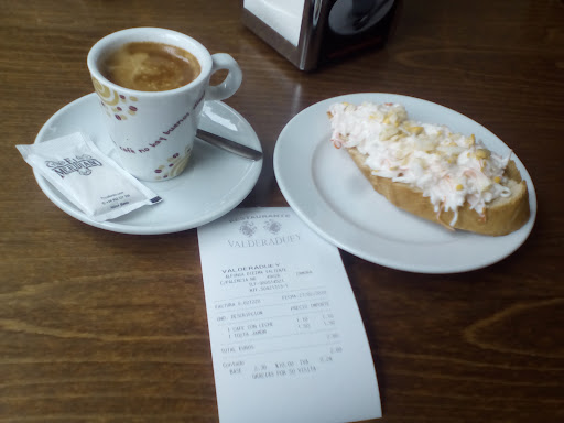 Read moreLa Cafetería Restaurante 🏞️ Valderaduey se encuentra en el zamorano barrio 🏘️ Vistalegre. Cafetera Futurmat Ariete F3 con café Cafento - La Flor de América y leche Gaza. Café con leche ☕️ 1,30 €. Grifo con cerveza 🍺 Mahou Clásica. Máquina 🚬 tabaco. Máquina tragaperras 🎰...