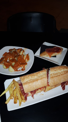 Read moreMe senté en la terraza y nadie me vio, por lo que necesité pasar dejando mi mesa a riesgo de perderla porque estaba sola. Estaban hasta arriba, se disculparon y genial, en seguida salieron a atenderme. Eran las 22.00 y me tomaron la nota de comida a las 22.10. A las 22.30 me avisaron que si quería algo mas de cocina que cerraba ya, y no, mi comida salio a las 22.40. A las 22.54 me dicen que cierran ya y me quedaba la mitad de la cena, obviamente me quejé, porque si me hubieran avisado, igual no me la pido. Cuando dije que me iba la chica me dijo que no preocupara que mientras cerraban podía terminar que me daba tiempo, y asi fue, pero claro, ya no comes igual. Pedi una tapa de salmorejo con jamón y aceite, unas papas con mojo y un bocadillo de ibérico con aceite. El precio normal. El salmorejo, no era el mejor que he probado la verdad, pero las papas estaban bastante bien. La posición es buena, peatonal, bastante espacio, una terraza bastante grande y un local mediano, pero decorado todo de Andalucía, bonito. Fui entre semana, quizá hay que probar un fin de semana con otro horario; también probar comida quizá mas típica. Le daré otra...