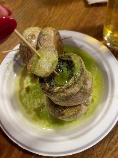 Read moreI was the first person to arrive after they opened the doors. I don't think anybody was fully awake:). No one really spoke to me. Space was clean very cold on that February morning. The mushrooms made up for everything. Stacked high on a piece of bread drizzled with a beautiful green sauce that had a strong garlic flavor but was simultaneously delicate. I don't usually eat bread as most of the time I find it extraneous, but it has soaked up all the sauce and the mushroom juices and could simply not be left behind!! Despite the cold, a caña was perfect...