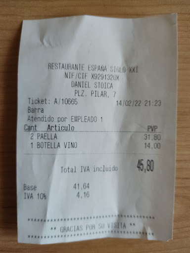 Read moreExcellent place to eat near Plaza del Pilar. I did the Menu del Dia and it was hard to pick due to all the great options available. I chose the Arroz Negro as first, Codillo for second. Both amazing. Waiter was knowledgeable about the area and the country. Adding a third picture taken last night as a gift if they want to put it on their wall. I would give 10 stars in service...