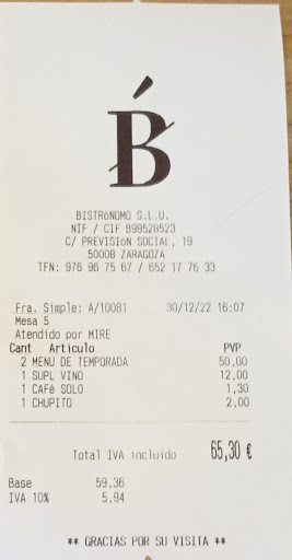Read moreLlevaba años queriendo probar el Bistrónomo y algunos de sus platos de los que tanto había oído hablar por conocidos. Fuimos a medio día con nuestro peque de 4 años, con idea de pedir dos menús y platos de carta aparte para los 3. Y nuestra primera decepción fue que, tras preguntar a la camarera, ésta nos dijo que la carta no estaba disponible, pero ofreció alguna alternativa para el peque. Y finalmente pedimos los dos menús, y un canelón para el peque.