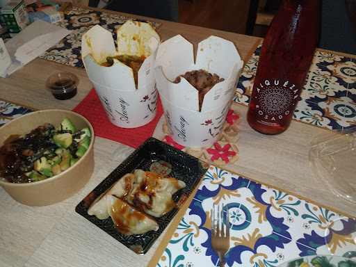 No conocía este lugar hasta que una amiga me habló de él y la verdad que me ha gustado mucho. La comida está rica y los menús de arroz y fideos que tienen están super bien de precio y te llenan, vienen con bebida y unos mini rollitos. También venden platos sueltos de arroz o fideos, sopas, entrantes y sushi. Las bandejas de sushi no están mal, las pedí para probar pero me gustan más los menús, suelo pedir el arroz de la casa o tres delicias, unas brochetas 🍢 de pollo y quedo super bien. La sopa miso también rica. El servicio muy amables y rápido, puedes pagar efectivo o tarjeta y te avisan con un localizador cuando está tu pedido. También tienen servicio para llevar y te lo dan todo en su envase y bolsa. También puedes pedir algo por glovo. Yo particularmente prefiero comer en el local, que si es verdad es bastante reducido el espacio pero se come a gusto. También puedes comer en una sillas afuera pero para verano es mejor. Abren para las comidas y cenas y suele estar concurrido. El local al final de la calle Cádiz a mano izquierda. Y me parece muy limpio todo, tienen el menú impreso en varias hojas así que puedes mirarlo con calma. Para esos días que no quieres cocinar y tener algo rápido pues este lugar te gustará, eso sí, recomiendo ir temprano porque se llena. Para mí, es un 3 B: bueno, bonito y barato. Y lo que más me mola, es que te sirven el arroz en unas cajitas como en las pelis americanas que piden comida china 😋😋😅 super guay para...