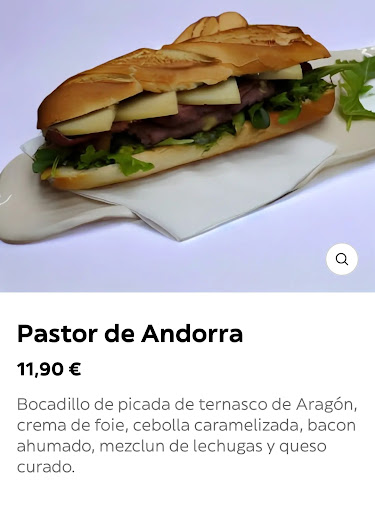 Read moreHe realizado un pedido a través de la app glovo que contenía: un bocadillo, un hamburguesa y unas bravas, por lo que se puede imaginar que seremos dos los que vamos a cenar. Cuando me han entregado el pedido he visto que no me habían enviado la hamburguesa, así que he llamado al establecimiento, donde me han indicado que como no tenían el artículo pues lo han cancelado y han enviado el resto. Lo normal es que hubieran avisado para indicarme el problema ya que en esa situación prefería que me cancelaran el pedido a sólo recibir cena para uno. La solución del empleado que me ha atendido: vuelve a realizar otro pedido, volviendo a tener que pagar la tarifa de entrega de glovo... Y para darle más emoción a la cena, uno de los ingredientes del bocadillo (o al menos así se indicaba en la aplicación) era foie, pero tampoco deberían tener porque en su lugar el bocadillo contenía paté lapiara o de la marca que fuera... Nada que ver con foie que era lo indicado en la descripción.