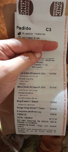 Os aviso porque no es de recibo el cuidado q tiene al poner los pedido. La ultima vez que fui esto es lo que paso, esto mismo que escribo es el email que les mande a ellos: De mi pedido el cual llevaba un combo de snacks con 7 aros de cebolla con fingers de queso y no se que mas... pues se han dejado de poner los fingers y el no se q mas. Todo esto despues de quejarme de que ya me estaba faltando tambien una hamburgesa de 1,99. Soy cliente de otros restaurantes de la cadena y lo que veo en este no es normal. Todas las hamburgesas q nos han puesto llevan el mismo pan... cosa q no es asi normalment ya q la doble chesse bacon xxl no lleva el mismo pan de la steakhouse por ejemplo, el problema es que ni me han avisado de ello. Y del producto faltante me he dado cuenta en casa ya q con tanta bolsita pues uno ni se entera. Si no llego a mirarlo yo me hubiera ido sin la hamburgesa faltante y aun despues de revisarlo la persona que me ha atendido, aun asi me han faltado cosas. Muchos fines de semana les falta una cosa u otra de promocion o ingredientes, por ejemplo hoy no me he podido pedir la fondue porque les faltaba queso. Todo esto viene tambien de que la anterior vez me hicieron esperar 45 min de reloj para un pedido porque sin darse cuenta se lo habian saltado... en fin me gusta la cadena Bk pero este no lo recomendaria. Es el segundo problema que tengo aqui en...