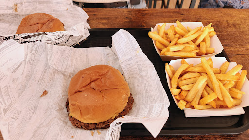 El sitio es nuevo y estaba abarrotado, a juzgar por lo lentos que salían las hamburguesas y los olvidos que tenían con los pedidos los camareros estaban desbordados, la comida eso sí muy buena, sin embargo detallar un apunte que hubo por parte de uno de los camareros (Cristian) el cual, una mujer embarazada le preguntó si podría pedir la carne de las hamburguesas al punto en su pedido,aunque eso significará tostarla más por fuera, respuesta del camarero: "igual tendrías que haber pensado mejor el sitio al que ir a cenar, porque aquí solo hacemos Smash", cómo detalle diré que las Smash, al igual que lo pone en su carta al "al punto", pongo tres estrellas en servicio porque el otro chico fue un encanto, (este no se si nombre) así que como consejo es si vais ir con tiempo porque si está abarrotado nosotros nos costó pedir 3 hamburguesas para una persona cerca de 2 horas en total, pero como digo, se les veía completamente abarrotado y a los trabajadores...