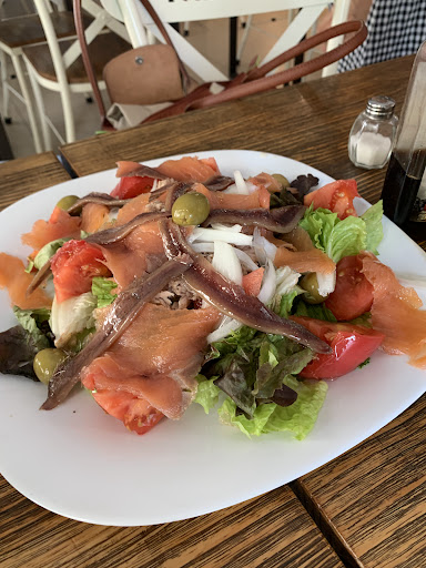 We opted for a salad with smoked salmon, tuna, anchovies, olives, tomatoes , onions and lettuce and wow was the portion generous as well as the ingredients. Well worth 14 euros.