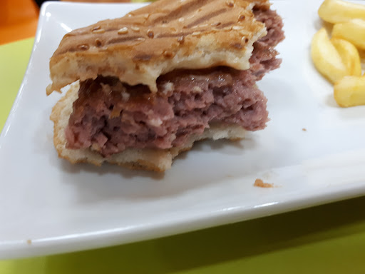 El sitio esta bien para ir con niños, el salon de los niños esta todo nuevo, nosotros estuvimos solos mientras que en el otro lado habia gente cenando. La carta esta bien, de la cual pongo fotos, sin embargo al ir a pedir nos dijeron que no admite cambios la carta. La wifi nos la facilitaron y la verdad es que bien. Al principio la entrada al sitio fue un poco fria y la camarera muy seca. Pedimos hamburguesas, raciones y bocadillos. Las hamburguesas estaban muy buenas y bien hechas aun siendo gruesas. Las rabas estaban bien quizas un poco hechas de mas y las bravas un poco crudas aunque nos las comimos. Los bocadillos fueron mordisco y mordisquito y estaban bien. La verdad es que repetiremos seguro. Los baños estan adaptados para niños. Hechamos en falta una trona que al parecer an de llegar asi que la proxima visita esperamos esten. Al ir a pagar hay que avisar si pagas con tarjeta ya que yo no avisé y fue un rollo al final pagué en efectivo pero el rollo es avisar antes por el programa de la caja registradora. Además mebosbdeb10€ no admiten. Por otro lado hemos ido a tomar vermú y las tapas no son muy allá.la croqueta de bacalao que Me encanta aquí no pudimos acabarla ninguno del mal sabor. Las tapas son de esas resecas y la pedir algo recién hecho me preguntó la camarera ¿algo como que? Alo que le respondí que lobque tuvieran me adaptaria y me contestó que no, que solo lo que había en la barra lo cual probé a disgusto por su presentación y pinta y lo que confirmó que no debí haber probado. Es por esto que de 4 le bajo a 3 Ybme molesto en modificar la reseña. Pongo una foto del plato donde se el fastro aceitoso de...