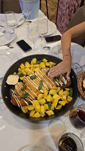 Read moreBuen restaurante nuevo en el barrio para comer. Se agradece en un barrio donde hay pocas opciones en cuanto a restaurantes de menu. Menú de l-v (creo) por 16.5e con postre y bebida incluida (agua, vino y gaseosa). El menú adecuado para el precio, nos gustó lo que probamos (tallarines carbonara y churrasco), también quisimos probar el chuletón XXL, y la verdad que estaba bueno y el tamaño más que grande (ver foto), comen dos con mucha hambre perfectamente e incluso tres con algún entrante añadido. Sin duda repetiremos. A destacar el personal, muy atento y amable en todo momento. Quizá estaría bien alguna variedad más de cachopo si es la especialidad del...