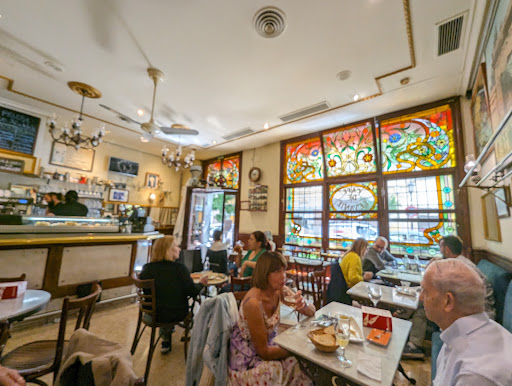 In few words • Fast and efficient service. Tasty tapas (go for the Tortilla). Good location with outside tables in a relatively quiet street. Average price. Historical place. Weekdays mornings crowded.
