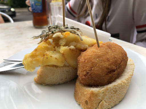 Fuí hoy a desayunar con mi pareja por primera vez aquí y no nos gustó nada, el café malo y los pinchos secos (me cogí una tortilla y una croqueta, la tortilla se quedó en el plato, y la croqueta era necesario pasar con el pan el cual también estaba rancio) nos atendió un hombre que fué maleducado (tatuado de gafas, barba y dos pendientes) al cual le pedí que me dijera los tés, sentí que me respondia de forma déspota, y mientras estaba hablando me corto para despedirse de otro cliente y al volver a mi conversación tuve que volver a repetirle lo que quería, le pedí que me dijera los diferentes tés que tenía y me dijo: "los normales los de siempre", siendo que otro chico me había dicho que le preguntara a este, porque no tenían carta de tés, ni ningun sitio donde pudiera verlos y que él era el que se los sabía, yo le digo muy amablemente si podría decirme los tés normales, me dice 3 tipos de tés y le pregunto que si solo tiene esos 3 y me vuelve a decir que tiene los normales y le pregunto solo esos 3? Y me dice 2 más con cara de ya te he dicho lo que tengo cuando yo le estaba pidiendo que me los dijera (yo en tu casa no sé cuáles son los normales) Además mi pareja entró a pedir mayonesa para la tortilla y el chico de la barra se la dio muy amablemente sin ningún problema a lo que llega el hombre ya mencionado y le llama la atención por darnos la...