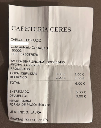 " Un ticket? Para dos refrescos, de verdad?" Cuando le solicito por segunda vez de muy mala gana y con mala cara es cuando marca y registra la venta y me tira el ticket en la barra de malos modales.