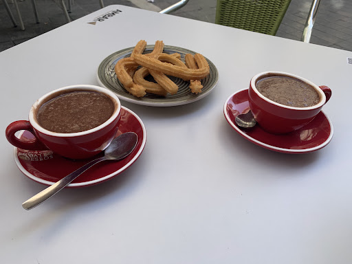 Read moreIt’s a cute cafe right where most tourist traffic hits. We came for hot chocolate and churros. It was pretty good, but not to best. I’d say that it’s better to sit outside and enjoy the view than inside. The bathroom is on -1 floor, so keep this in mind if you are with a person with special needs or one in...
