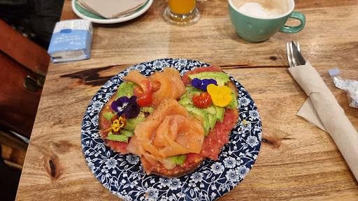 This is a refined , cute cafe with fantastic breakfast toasts and sandwiches executed at its best with healthy ingredients that could as well be served for a brunch. It goes beyond the usual at a Spanish cafe offering bagels, eggs Benedict pastrami sandwiches and sourdough bread. Nice terrace with views to the quietest part of green space of elegant Plaza de los Sitios with a modernist flair. Great cafe latte, be aware that if you ask it with ice they will take it literally and will serve you the full cup plus a glass with ice to pour it over by yourself. Friendly staff, also foreign and dog friendly. It is a well known place appreciated by the local expat community as well as foodie savy tourists...