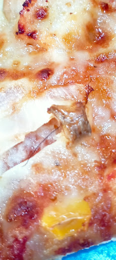 Pedimos tenedores y salsas. Para nuestra sorpresa no llega ninguna de las peticiones, tras traernos los primeras pizzas (2 chexis full de ques). Nos la traen sin cortar, y volvemos a pedir los tendores y salsas, a lo que nos dice otro de los empleados que ahora nos lo trae (nunca llegó).