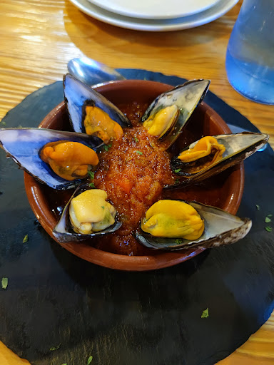 Fuimos a cenar 4 personas adultas, compartimos raciones. A nivel cantidad iban acorde a los precios, calidad alta y servicio excepcional. Los mejillones estaban ricos, tenían un ligero toque picante debido a su salsa (pero particularmente no considero imprescindible probarlos). Los canelones de bogavante estaban especialmente buenos, muy recomendable probarlos. Pimientos rellenos de boletus (sabroso e intenso). Albondigas de la casa, jugosas y con salsa de naranja, muy novedosas y ricas. Tartar de solomillo, presentación final realizada en la mesa por el propio camarero, con explicación y atención (espectacular la textura, el sabor y la combinación de carne y yemas de huevo con la salsa lateral de mostaza Dijon, este es uno de los imprescindibles, recomendado de forma acertada por el camarero). De postre una tarta de queso y una tarta de chocolates a compartir entre los 4, todo muy bueno, sobre todo la tarta de chocolates. Simpatía, atención, rapidez y preguntas sobre cómo va la cena y cómo deseabamos el orden de los platos (sugiriendo él, que se agradece; y sin conseguir que se acumulen platos en la mesa y se queden fríos -momento y error odioso que algunos restaurantes a día de hoy siguen cometiendo-). El ambiente es ameno, tranquilo y cómodo, respecto a la comida de 10. Volveré sin duda alguna, con amigos o pareja, es un lugar bueno para ir en cualquier situación a picar algo o directamente...