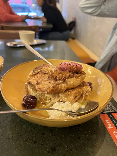 Read moreVery nice place for breakfast or light lunch. The menu, written with chalk on the wall, consists of different toasts, sandwiches, egg dishes and a few sweet options. We went for the eggplant toast with almond pesto, ricotta, mushrooms and roasted cherry tomatoes as well as the "katsumixto", a variation on the classic cheese-and-ham sandwich with Tonkatsu sauce and Brioche bread—both were delicious. The coffee is from changing specialty roasters around Spain, such as Hola, Hidden and Three Marks. When we were there in April 2022, they were serving a pleasant natural Brazilian coffee from Puchero roastery. Their equipment is top-notch as well (Linea PB & Mythos 1). Very...