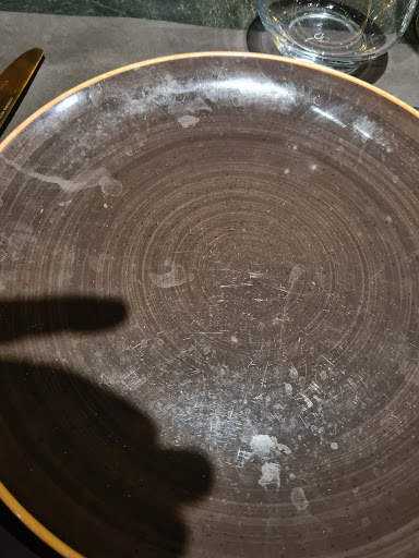 Read morePoco recomendable. Empezamos muy mal, ya que unos del grupo llegamos antes y no nos dejaron tomar una cerveza en la terraza. Nos dijeron que estaban reservadas para cenar, pero estaban vacías cuando entramos a cenar. Seguimos mal. Nos dieron una mesa redonda, con las sillas todavía sin poner (estaban apiladas en un rincón). Después de que adecuaramos la mesa, nos indicaron que nos cambiasemos a una mesa alta en la entrada. La iluminación de esa mesa era pésima con unos focos directos en plan interrogatorio. Los platos y las copas estaban sucios (foto). Al servir el vino el camarero deja la botella en la mesa de malas maneras, a la vez que mira a otro lado mientras se va. Los segundos llegaron separados por más de 15 minutos. En una mesa de 7 comensales, había 3 tipos de copas diferentes (foto). La carne que pedimos al punto vino fría, sobre una piedra que estaba fría. Algo tan sencillo como asar el pan, mal: totalmente crudo (foto). Los postres lo único bueno: la torrija, el tiramisú y la tarta de queso estaban bien. A mitad de cena, canción de cumpleaños a todo volumen. Cuando se empieza a vaciar el local, los camareros pusieron reguetón a tope, seguramente para echar a la gente. Resumiendo. Sitio mediocre, comida mala, servicio mejorable, postres adecuados, precio aceptable. Me pongo a disposición del propietario para facilitar más...