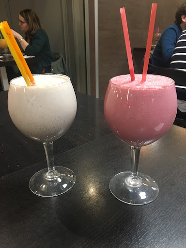 Es un lugar muy relajado y tranquilo, vale realmente mucho la pena darle una oportunidad. Desde zumos de fruta variada de todo tipo, hasta crêpes dulces y saladas. Tanto la comida como la bebida está buenísimo. Yo recomiendo, personalmente, que vayáis allá donde en la carta pone algo así como "natural" o "de la casa", sobretodo las que llevan naranja, pues son lo que mejor sienta a la larga. Y en cuanto a las crêpes, la de plátano con chocolate negro está riquísima. Y algo curioso es la de queso, no tiene un sabor ni demasiado fuerte ni demasiado suave.