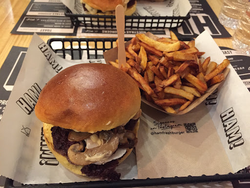 Read moreHabía hecho varios intentos para comer o cenar allí, pq vivo al lado, pero los había abortado pq el local es malo, caluroso y de ambiente recargado, sales directito a la tintorería, el olor es muy intenso. Pero hace unas semanas cenamos en la terraza. Las hamburguesas, razonables. Las patatas, un homicidio gastronómico, y eso que pregonan q son caseras y cortadas a diario. Pero el maltrato patatero es descomunal. Hoy, atendiendo a las bonitas fotografías exteriores de un Steak, y aprovechando que las puertas estaban ancladas abiertas, he intentado pedir un Steak para llevar. Me he encontrado con 4 empleados, 2 por género, y no me lo querían hacer, pero les he convencido, y han llegado a teclear el pedido. Ahí han empezado los problemas, "la propiedad no quiere", "la marca nos lo prohíbe", después de qué les hubiese exonerado de cualquier crítica, y de exponerles que vivo a dos portales de distancia. Eran 2 y medio a 1 y medio, pero al final ha ganado el planchista, y me han anulado el pedido. Pues bien, antes se coge a un mentiroso que a un cojo. Al salir, he llamado a un Ham del C.C. La Dehesa, Madrid, donde una amable camarera me ha dicho que estarán encantados de prepararme el producto para llevar cuando lo desee. Yo no volveré, pero a la propiedad de Zaragoza le sugiero que no me responda, mejor que dedique sus esfuerzos a limpiar la plancha, la freidora, y la extractora. Hay que ser valiente, o tenerlos benedictinos, para tener una jaula de cristal a la vista del público. A quien lea esta reseña le recomiendo ver las fotos de otras reseñas donde se ve la plancha y la extractora y tomar conciencia de la higiene del local. Mejor que no os visite Chicote. Absolutamente mediocre y...
