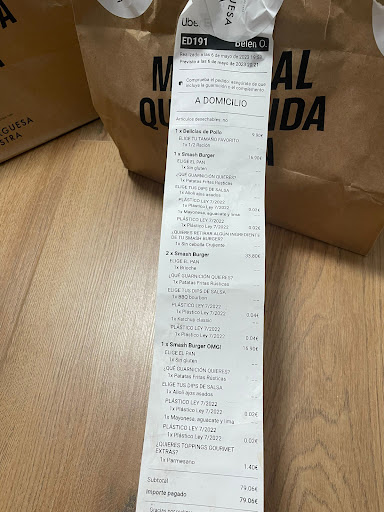 Ahora bien, los puntos positivos del local son el local en sí mismo, con una decoración acogedora y moderna, aunque hay demasiadas mesas y además están muy cerca las unas de las otras, haciendo las conversaciones muy poco discretas. Se agradece mucho el detalle, y en este establecimiento lo tienen (tal vez sea seña de la franquicia a la que pertenece). Por ejemplo, en la mesa ponen un convoy de distintas variedades de salsas (10 salsas distintas, nada menos) para aderezar tus platos. La servilleta que ponen también es bastante curiosa. Y al finalizar la comida, junto a la factura, una mini-hamburguesa de gominola muy graciosa. ¿Podría ser mejor? Por supuesto, eso siempre. Creo que deberían tratar de mejorar en aspectos muy básicos de la hostelería, como el producto base o la atención y profesionalidad de sus trabajadores, antes que centrarse en hacer puro marketing y detalles...