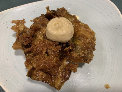 Read moreGratamente sorprendidos por las tapas/platos tan elaborados. Delicioso todo lo que hemos probado y nos hemos quedado con ganas de probar más. Nos hemos dejado aconsejar por una camarera excelente y entre otros hemos elegido un plato y un postre de temporada como las alcachofas con alioli de almendras (no tengo palabras para describirlas, me quedaría corta...sencillamente EXQUISITAS!) y helado de trufa sobre bizcocho con salsa de turrón de jijona (una auténtica explosión de sabores). El resto de lo que hemos comido también delicioso la carrillera, el crujiente de queso.... Recomiendo 100% y volveremos a seguir probando el resto de la carta y...