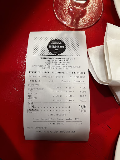 Read moreDurante las fiestas del Pilar, decidimos entrar a la hora del vermut para beber y picar algo. Ya conocíamos hace muchos años este bar. Pedimos 1 Cocacola, 1vermut y 1 botellín de cerveza acompañado por 4 tapitas (3 minibocadillos de rabas y una tapa con 2 gambas Orly. Pedimos la cuenta enseguida. Sin ticket ni nada, 24 eurazos. Así, por la cara. No sabemos ni cómo reaccionar al principio por lo que le solicitamos pagar con tarjeta. MINIMO 30 EUROS. DE LOCOS. Aún así hace el esfuerzo de su vida y nos cobra con tarjeta. Bien. Al momento de pagar, empezamos a comentar entre nosotros que no puede estar bien esa cuenta, que se ha tenido que equivocar la camarera (una chica con el pelo corto y de color entre rosa y morado), con lo cual, le comentamos nuestra impresión en el asunto. La situación, rara, con una señora mayor al lado (entiendo que será la jefa) y ella muy tensa y mirándola de reojo. La primera vez no nos devolvió nada alegando de esas maneras que la cuenta era correcta. Al momento fui yo la que volví a reclamar. Se inventa que cada cosa son 3 euroS, menos el agua que son 2€ (todo a 3 euros?, SI LO SE ME PIDO UN CUBATA), y reconoce que nos ha cobrado 3 euros de más (7 artículos a 3 euros cada uno, son 21, no los 24 que nos había cobrado). Nos da los 3 euros en mano, previamente cobrados con tarjeta. EN NINGUN MOMENTO NOS SACÓ UNA CUENTA JUSTIFICANDO ESE COBRO QUE NOS ESTABA REALIZANDO. Vale que son Pilares y que hay más gente en todos lados, eso te lo compro, pero que estaféis al cliente con unos precios inventados y desorbitados, me parece lamentable y hasta denunciable. Deberíamos haber solicitado el ticket y la hoja de reclamaciones, con toda la razón del mundo, pero fuimos muy tontos. En fin, no volveremos,...
