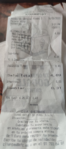 Read moreFui el miércoles sobre las 9, pedí el menú grande de tiras de pollo, dos purés y unas bolas de queso. Íbamos con prisa para entrar al cine, miramos las bolsas, vimos varios paquetes y dimos por hecho que iba todo... Al abrir el pedido, la bolsa de patatas era la típica que te ponen como tamaño pequeño en cualquier otro restaurante de comida rápida, no estaban ni los purés, ni las bolas de queso que por supuesto se me habían cobrado, en su lugar habían puesto 2 tristes alitas de pollo super picantes (odio el picante). Decidimos ir después del cine a comentarles lo que había ocurrido, pero ya habían hasta cerrado. Normal que ninguno de los demás que iban conmigo quisiera coger la cena allí, es una lotería, sólo acertaron con las tiras de pollo... Es obvio que no...