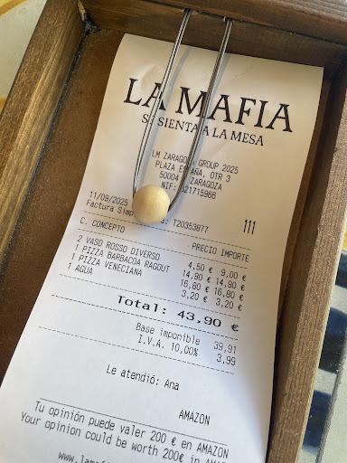 Read moreNuestra visita a La Mafia se Sienta a la Mesa fue, sin duda, una experiencia culinaria excepcional que superó todas nuestras expectativas. Desde el momento en que entramos, la decoración nos envolvió por completo, transportándonos a un auténtico rincón de Italia con un ambiente acogedor y lleno de encanto. Pero lo que realmente hizo que nuestra velada fuera perfecta fue el servicio, rápido, excelente y la increíble profesionalidad y amabilidad de nuestra camarera, Sheila. Su atención fue impecable, siempre atenta a nuestras necesidades, con una sonrisa y una eficiencia que hicieron que nos sintiéramos verdaderamente valorados. Es un placer encontrar a personas tan dedicadas que marcan la diferencia en la experiencia del cliente. En cuanto a la comida, quedamos encantados. Las raciones son abundantes, garantizando que nadie se quede con hambre, y la relación calidad-precio es absolutamente razonable. Cada plato que probamos estaba delicioso, fresco y con el auténtico sabor italiano que tanto nos gusta. Además, la rapidez con la que llegaron nuestros platos fue impresionante, un gran punto a favor para aquellos que no les gusta esperar. En resumen, La Mafia se Sienta a la Mesa es un restaurante altamente recomendable si buscas una auténtica experiencia italiana con comida deliciosa, raciones generosas, un ambiente encantador y, sobre todo, un servicio de cinco estrellas. ¡Gracias, Sheila, por hacer nuestra visita...