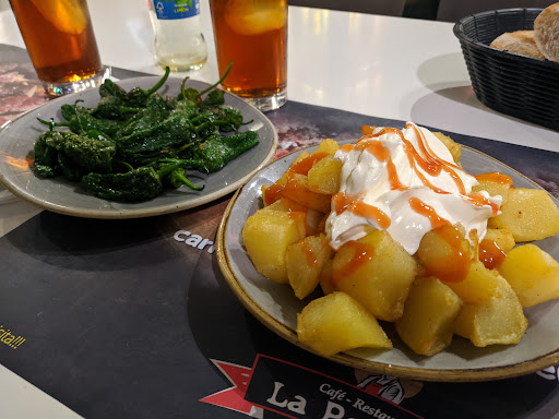Read moreHe ido un par de veces, la 1a para comer alguna tapa y esta 2a para alguna ración. Comento esto porque ni he sido habitual ni creo que haga falta serlo para valorar el sitio. Está en una zona algo complicada para según qué precios, pero si la calidad está justificada, adelante. Por lo visto, su especialidad es la carne a la parrilla, aunque como digo yo no la he probado. El sitio como tal está bien, espacioso y en las ocasiones que fui, el trato fue correcto. Mencionar que no estoy del todo seguro si cumplen el aforo establecido por normas sanitarias, pues no me fijé demasiado, aunque siendo honesto la cantidad de mesas no distaba mucho de la 1a vez que fui hace unos cuantos meses... No creo que haga falta decirle al propio propietario esto último, salta a la vista. Pedimos un par de raciones, bravas y pimientos. Las primeras super normales; nada de salsa casera, todo industrial o como yo digo; del cubo del Makro al plato y listo. De hecho, cuando pregunté si la salsa era casera o simplemente era kétchup simplemente me respondieron como que "era salsa brava"... Eso si, las patatas como tal eran caseras y estaban en su punto. El plato de pimientos, normalito. Según he visto hay gente que dice que ponen poca cantidad o todo rebozado, en mi caso no fue así. Por los platos + 2 refrescos pagamos unos 14€ (caro para lo que era y con pan como suplemento).
