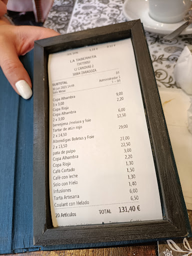 Quiero expresar mi sincero agradecimiento al personal de La Tabernita por su cálida hospitalidad y atención durante toda mi visita. Su amabilidad y conocimiento de los platos hicieron que la experiencia fuera aún más gratificante. Además, les animo a seguirme en Google Maps, donde encontrarán más reseñas y recomendaciones de otros lugares destacados en Zaragoza.