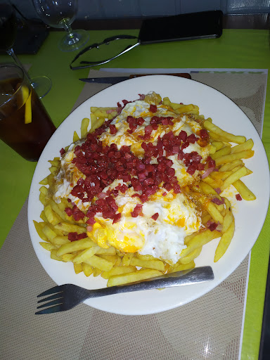 Hemos ido dos veces a almorzar un grupo de 9 personas. La segunda vez el día de antes reservamos una mesa para las 10:00 para 9 personas, al llegar puntuales la mesa no estaba preparada y nos acomodados 9 en mesa de 8, algo más pretos de lo normal y eso que éramos 9 morlacos. Yo pedí cazon la primera vez, resultó algo aceitoso y la segunda una hamburguesa la de la casa, la cual me pareció algo simple para ser la de la casa y se sirve sin guarnición, el bacon goteaba aceite y de dos trozos uno estaba quemado y otro crudo. La primera vez que fuimos nos pusieron gaseosa pequeña y vino pequeño para 6 que pedimos vino, y la gaseosa pequeña que llevamos a la barra para reponer la rellenaron delante nuestra y la volvieron a servir, claro está que estaba sin gas. La segunda vez el vino tinto estaba del tiempo o caliente, y eso que lo pedimos frío.la jarra donde lo sirvieron estaba caliente seguro, suerte que uno del grupo llevaba vino y ese bebimos. En resumen es un sitio de barrio en el que se almuerzo bien, y pueden atender almuerzos, en la zona hay varios sitios donde almorzar igual o mejor. Los vecinos del barrio acuden y supongo que acudiendo varias veces y sabiendo lo que pedir es un muy buen...
