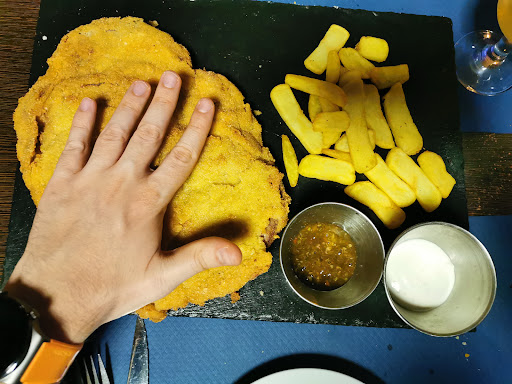 Read moreNos cogieron sin reserva, llegamos sobre las 20:45 y había huecos por suerte. Pedimos unos nachos con salsa chedar, fingers de queso y el cachopo que presentaron al concurso de cachopos. Todo estaba muy bueno, tal vez pecamos de no saber el tamaño del cachopo y tuvimos que llevarnos parte de el en Tupper. Los camareros iban con mucha prisa, tal vez abarcaron más negocio del que se podía sostener, entraron 5 repartidores a domicilio de comida en el tiempo que estuvimos, más todo el restaurante el cual no tenia más hueco libre a las 21:00. Mis 4 estrellas son por ese motivo, se demoraron un poco en sacar la comida, se disculparon por ello. Pero es normal con la cantidad de comida que debían de servir....