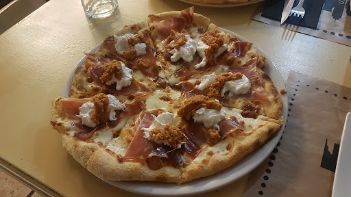 Fuimos a probar esta pizzería por sus reseñas de Google. Los precios son bastante buenos con pizzas de 33cm entre 10-13,5€ las más caras, con oferta de 2 pizzas por 30 euros miércoles jueves y domingos. La chica que nos atendió fue muy amable a pesar de estar sola para barra y salsa, muy eficiente. En nuestro caso optamos: Nachos (9,5€): buenos pero no destacaban Pizza blanca metrópolis (13,5€): la que más nos gustó por su combinación de ingredientes Pizza IGP (13,5€): buena cantidad de ingredientes y buen sabor para lo que suele costar esta pizza habitualmente. La mejoraría añadiendo más pistacho por encima Pizza rúcula y pastrami (13,5€): buen sabor del pastrami aunque le faltaba jugosidad Pizza 6 quesos (12,9€): la que menos nos convenció, no destacaba demasiado el sabor a ningún queso en especial Pizza blanca verduras (12,5€): simple pero más fresca que las anteriores Pizza ternera BBQ (12,9€): buena pero tampoco destacaba