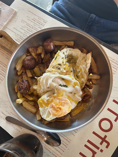 La comida fue espectacular. Todo lo que probamos estaba buenísimo, pero quiero destacar especialmente el brownie de chocolate, que sinceramente creo que ha sido el mejor que he probado en mi vida. También el risotto de funghi me pareció muy sabroso. Mis acompañantes pidieron entrecot, bacalao y migas, y todo estaba muy bien cocinado. Las porciones son muy generosas, así que ojo con pedir con los ojos: con el primer plato ya estábamos bastante llenos.