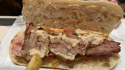Read moreVivo por la zona de la plaza San Francisco y no me gusta opinar mal sobre el comercio y restauración de la zona, me da mucha pena cuando cierra alguno y me encanta que haya mucha oferta, pero la experiencia en este caso fue nefasta. Estuvimos comiendo 2 personas el viernes pasado a las 2 de la tarde. Cuando entramos el restaurante tenía una mesa de 4 personas ocupada. Nos ofrecieron mesa alta o baja y pudimos ubicarnos donde quisimos. Hasta ahí lo bueno. A partir de ahí todo fue regular o mal, al camarero claramente le cayó en gracia mi pareja y solo se dirigió a ella durante toda la comida ( cariño, amor, guapa, se deshizo en elogios) no me parece algo grave, pero resulta molesto, una cosa es ser amable y simpático y otra lo que allí ocurrió, no me suelen molestar estas cosas, pero fue incómodo para mi pareja. Se olvidó de preguntarnos por la bebida, se lo tuvimos que recordar justo antes de que llegase la comida. Pedimos el bocadillo de salmón, el de pollo braseado y unas patatas Mott. En cuanto a las patatas, unas patas fritas congeladas, sin más, de las que empiezan a proliferar por todas las bocaterías aunque la salsa estaba buena. El bocadillo de salmón, soso. El de pollo estaba bueno, sabroso aunque el pan en ambos casos estaba casi crudo. Desde luego estos dos bocadillos no estaban al nivel de los del resto de bocatetías de la zona. Para nuestra sorpresa cuando estábamos terminando nuestros bocadillos, el camarero no dice que nos tenemos que levantar y mover nuestra mesa porque tiene que montar una mesa larga y que sino no cabe, y así fue, movimos nuestra mesa metro y medio hacia atrás interrumpiendo la comida. Dimos rápidamente nuestros últimos bocados, pagamos y nos fuimos con una extraña sensación, la sensación que se tiene cuando quieres compartir lo malo que ha sido, pero no estás seguro de si la otra persona opina igual...en esta ocasión fue FATAL, no sé si le daremos otra...