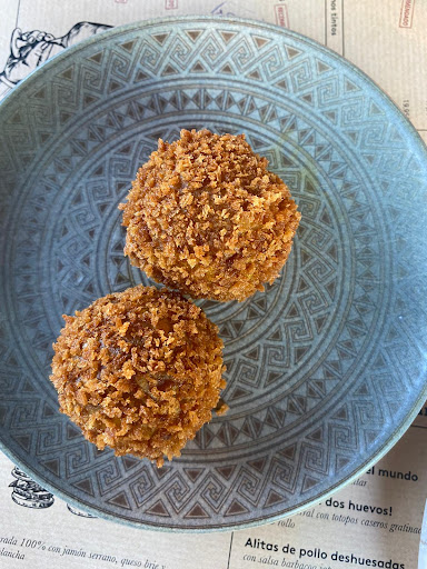 Read moreFantástico restaurante de comida urbana con una ubicación inmejorable en la Plaza San Francisco. Teníamos ganas de visitarlo debido a su participación en el Cachopo Fest, su propuesta tenía muy buena pinta y no defraudó. Fue complicado conseguir reserva pese a hacerlo con semanas de antelación, finalmente lo conseguimos. Está muy concurrido. Los camareros en todo momento muy atentos y amables. Pedimos como entrantes croquetas de gallina tikka masala (8'25€) y langostinos en tempura con mayonesa de crustáceos (9'25€). Las croquetas vienen 4 unidades y son muy sabrosas. Si buscas cremosidad en ellas no son la mejor opción. Los langostinos y su mayonesa estaban espectaculares, buena cantidad con rebozado finito y muy crujiente que conjugaba perfectamente con la salsa. Plato para repetir. El cachopo fried kitchen (15'5€) venía acompañado de patatas fritas y su relleno era de jamón, setas shitake y queso gorgonzola. Muy buen tamaño y combinación de sabores, con un ligero toque a queso potente gracias al gorgonzola. Como se puede apreciar en la foto rebosaba relleno. Sin duda uno de los candidatos a ser el mejor cachopo de Zaragoza. Cómo postre pedimos el cofre de Nutella (5'25€) y tarta de queso (5'25€). El gofre era muy blandito y muy rico. La tarta de queso estaba espectacular pero la ración era muy pequeñita, no sé a qué se debería ese tamaño. Cómo resumen, nuevo restaurante muy top de street food que se puede adaptar a cualquier gusto culinario. Tiene un precio muy ajustado, salvo las croquetas todo me pareció muy correcto en este aspecto. Volveremos a probar más platos divertidos...