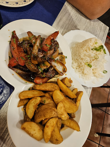 En líneas generales, la comida estaba muy bien. Como peruano te gusta probar cosas que te recuerdan tu comida. Pedimos jalea mixta (las yucas muy bien y el resto de mariscos y pescado muy bien, la leche de tigre muy sabrosa aunque un pelín escasa), anticuchos, muuuy sabrosos y el punto era perfecto, no se hacía bola en la boca. La sazón muy buena. El lomo saltado estaba bien, la carne eso sí estaba un pelín dura, pero de sabor bastante bien.