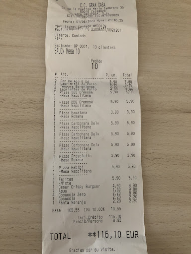 POST ORIGINAL: Mi primera o segunda opción cuando acudo a Grancasa a cenar con mis amigos. El repertorio de productos que ofrecen es muy económico y permite disfrutar de una cena agradable, barata y que tampoco te deje una sensación de empacho al terminar.
