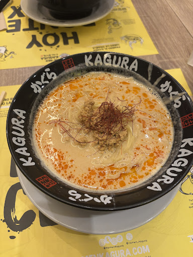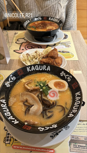 Pero lo que realmente hizo que nuestra visita a Ramen Kagura fuera especial fue el inigualable servicio de Emilio, nuestro mesero. Desde el momento en que nos sentamos, Emilio nos recibió con una sonrisa sincera y nos hizo sentir como en casa. Fue atento, cortés y siempre dispuesto a responder nuestras preguntas sobre el menú y recomendaciones. Además, nos sirvió con eficiencia y siempre se aseguró de que tuviéramos todo lo que necesitábamos.
