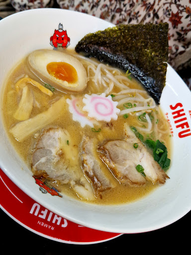 La comida, le doy un 6. Igual es este restaurante en particular, pero suelo frecuentar Shifu y puedo decir que esta vez por lo menos no ha estado a la altura. Las gyozas de temporada NO tenían sabor. La salsa estaba muy buena pero se llevaba todo el protagonismo y debo decir que parecían muy prometedoras por los ingredientes pero NO nos supieron ¡a nada! Obviamente quedé altamente decepcionada, y desde luego que NO merecen el precio. Los ramen debo decir que estaban bien hechos, y la cantidad como siempre generosa, lo pagas, pero la calidad y el sabor, no se qué pasó, pero no se parecía en nada en las anteriores veces que fui.
