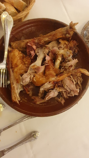 Read moreI'm not sure what the rave is all about. It's on Saturday night, and there were only about 3 tables, including us , having dinner. We ordered the roasted pork, and it took at least 25 minutes for the food to be served. Two small pieces of roasted pork for €26. Side dishes are small in portion. After we were more than halfway into our dinner, the waitress brought out a bread basket with 4 slices. We looked at each other and surprised that why she didn't give is sooner. We were charged €4 for the bread that we didn't have time to eat. Everything here is very pricey for the quality and portion that they are serving. Wish I could say something more positive, but...