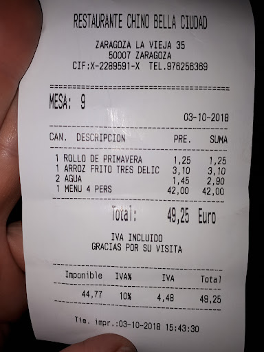 Read moreMi experiencia en este restaurante chino, fue de las más desagradable y asqueroso que un comensal puede verse inmerso. La cuestión que fuimos a cenar no suele estar muy abarrotado así que decidimos cenar en el restaurante. Nosotros pedimos, arroz tres delicias, rollitos de primavera, pollo con almendras y fideo con gambas. La cuestión viene en el último plato cuando derrepente en medio de todos los fideos aparecen DOS CUCARACHAS, QUE ASCO. Considero que las disculpas de la dueña o emplea no lo sé, quedan de manera insignificante ya que esto hace que me plantee varias cosas la higiene, limpieza de...